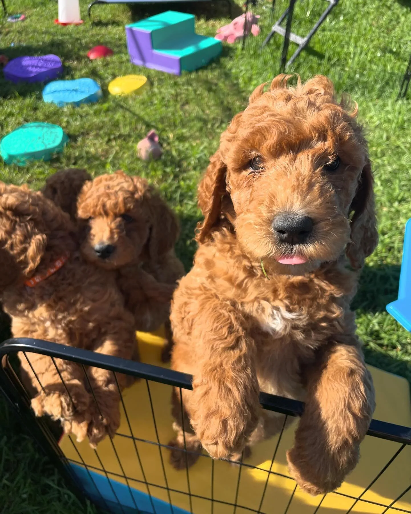 We couldn't be happier with our decision to bring Jaffa into our lives, and we owe it all to Naomi at Illawarra Groodles. Jaffa, previously known as "pup orange," is now 9 months old, and she's grown into the most loving and playful companion we could have ever hoped for. From the moment we first met her, Jaffa's gentle nature and friendly personality won us over. It's clear that Naomi puts a lot of effort into raising well-socialized and happy puppies. Jaffa has been a joy to train—she's smart, eager to please, and has a wonderful temperament. She's been great with other dogs and loves meeting new people.